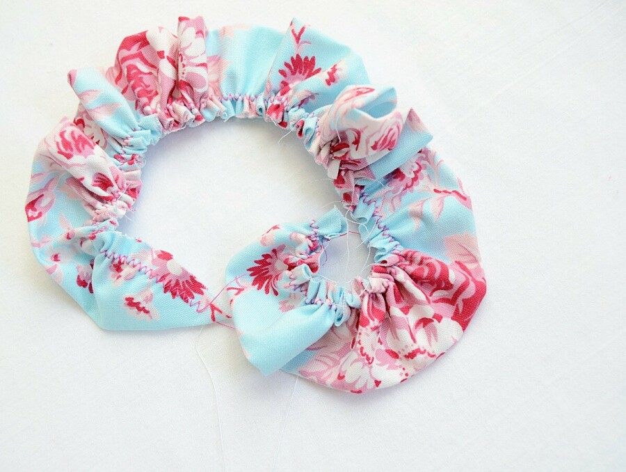 Толстую нить вденьте в иглу для ручного шитья и пропустите под стежками зигзага. Соберите полоску на нить.