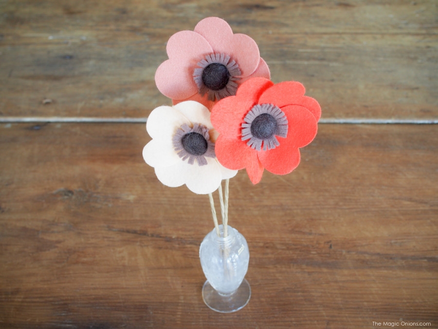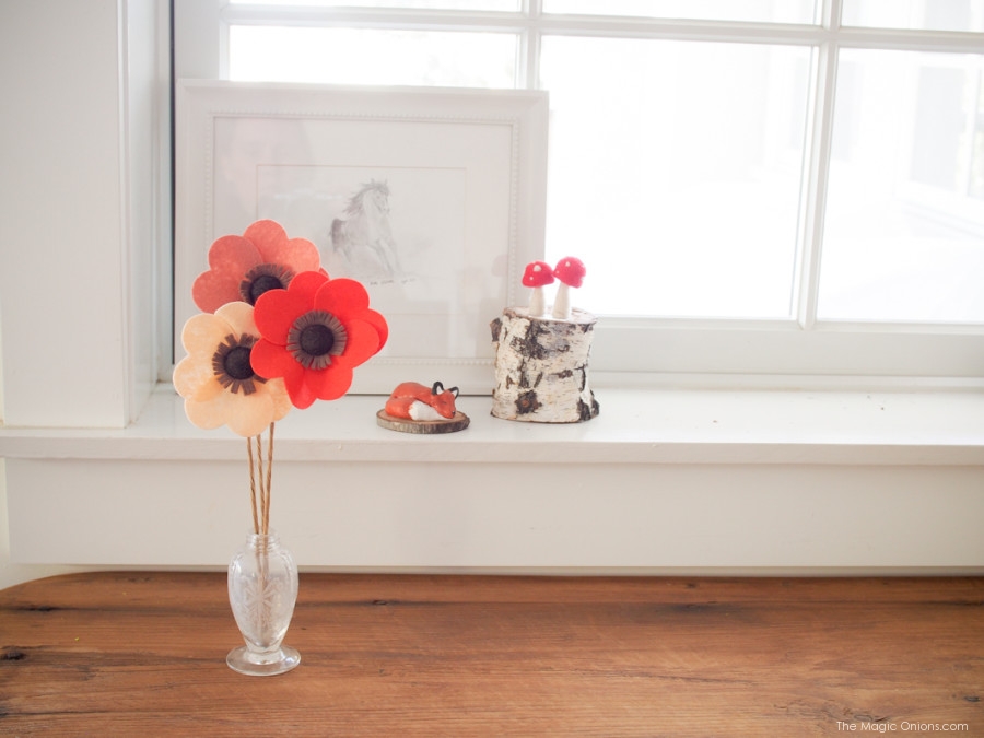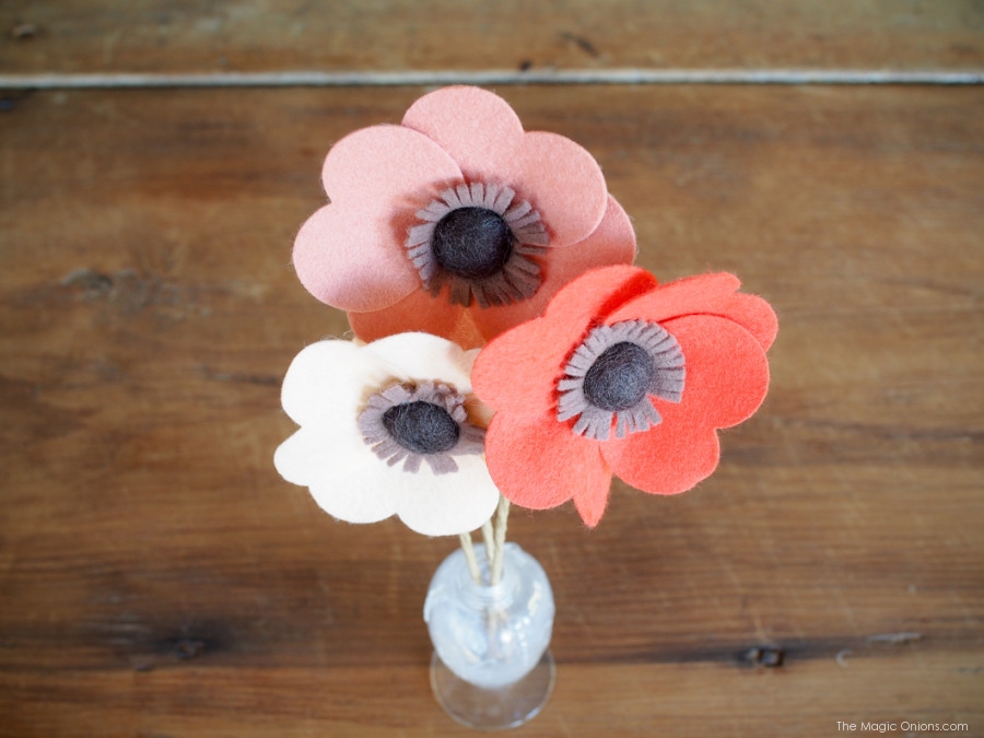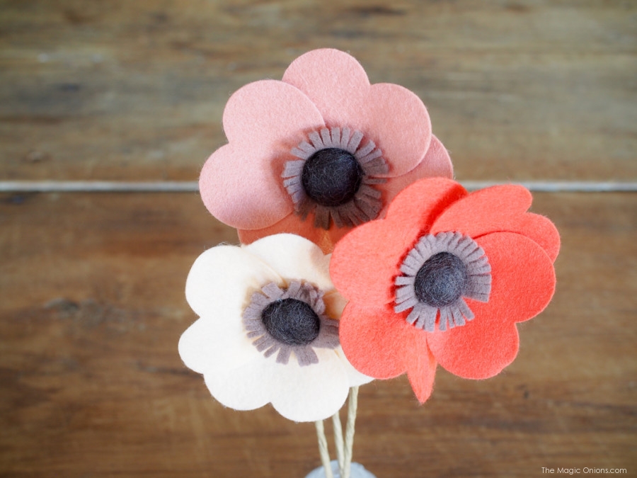 Цветы из фетра могут стать прекрасным интерьерным декором. Для изготовления таких аксессуаров потребуется высококачественный фетр и войлок. Также нужно обзавестись плотной бечевкой с проволокой внутри. Такие стержни можно найти в магазинах для «Хэнд Мэйд». Также мастеру потребуются войлочные шарики, клеевой пистолет, булавки, бумага и ножницы.
