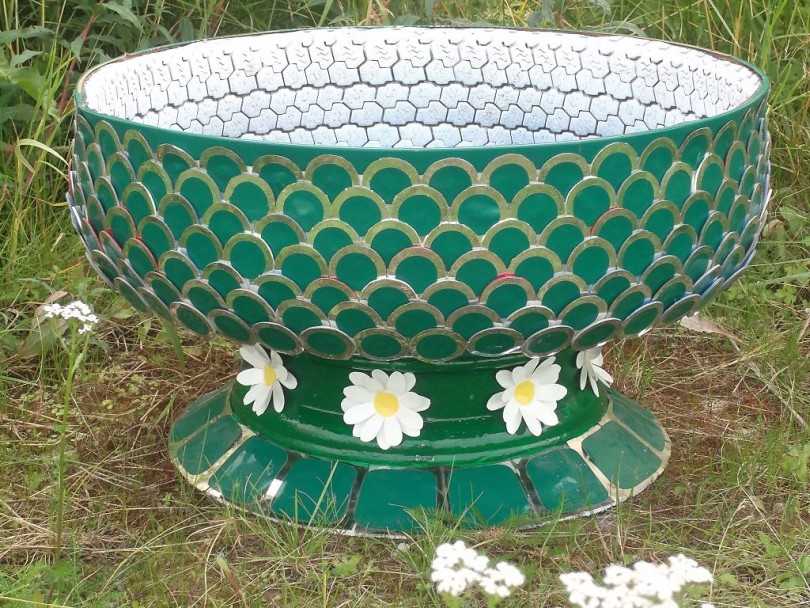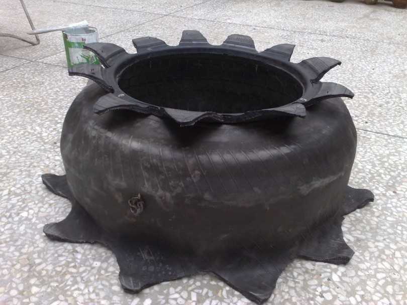 Этот фонтан ─ произведение одновременно и скульптурного, и архитектурного жанра, но состоит оно из элементов, для создания которых наиболее часто применяются автомобильные шины. Эти элементы ─ клумбы из автопокрышек, давно и прочно занявшие заслуженное место в создании любого городского и сельского пейзажа.