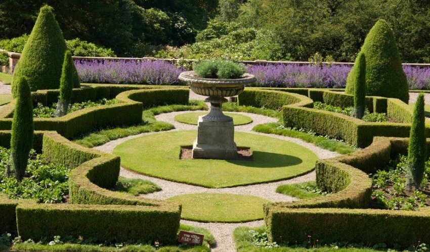 Еще одна особенности такого ландшафтного дизайна – боскеты. Это геометрические композиции из идеально постриженных кустарников.