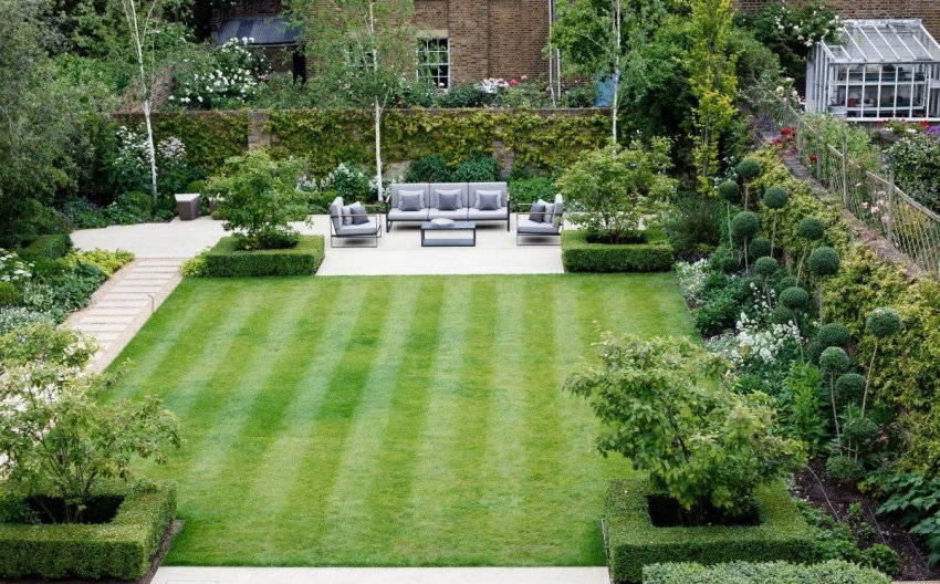 Стоит отметить, что общая площадь декораций не должна превышать территорию зелёного газона. Это золотое правило садового ландшафта. Чтобы вырастить хороший газон, необходимо время. К примеру, английские травостои, которые широко известны своей мягкостью, выращиваются в течение десятилетий.