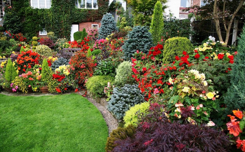 Поэтому нужно знать главные правила оформления газона, особенности высадки цветочных композиций и немногочисленных деревьев, а также следовать некоторым рекомендациям при оформлении зелёной изгороди и миксбордеров.