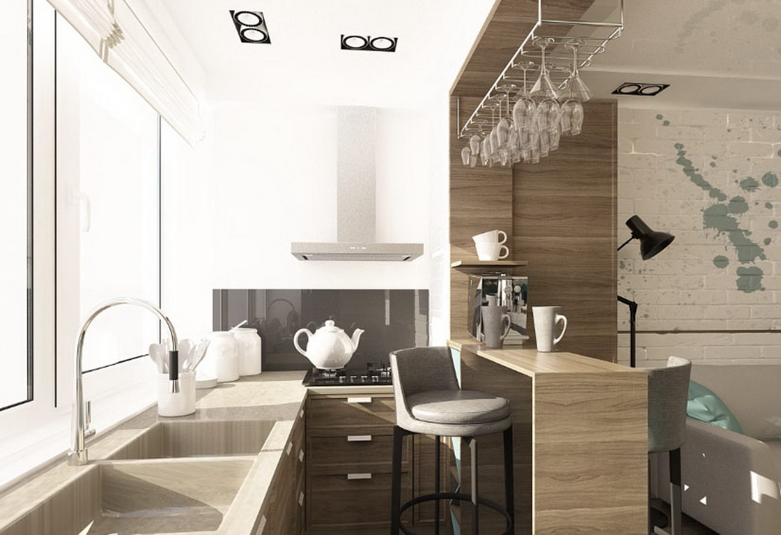 - перенос кухни на балкон актуально для владельцев небольшой квартиры-студии;