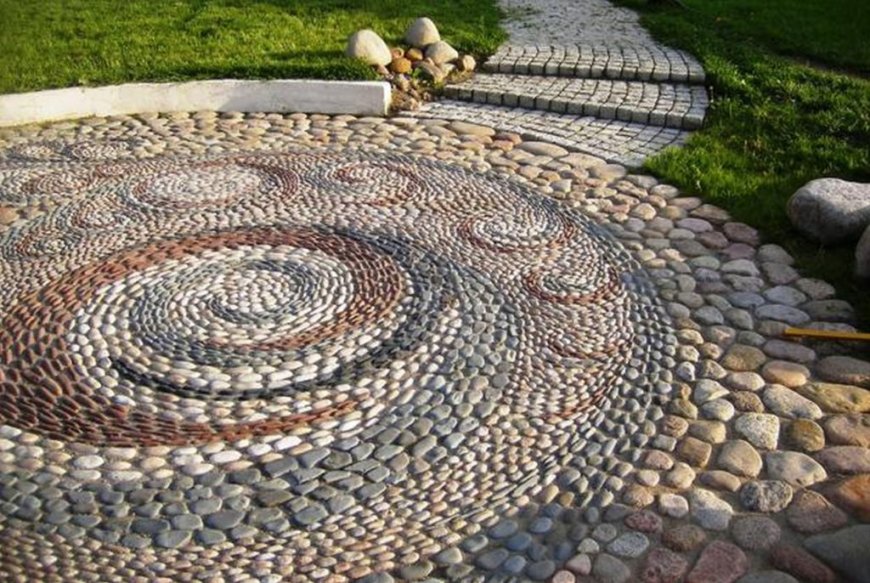 - Мозаика. С помощью камешков разного вида выкладывают красивые картинки. Это можно сделать на земле, в цементном растворе или на основе, приклеивая материал. Для достижения результата можно ограничиться природным внешним видом, а также выполнять окрашивание.
