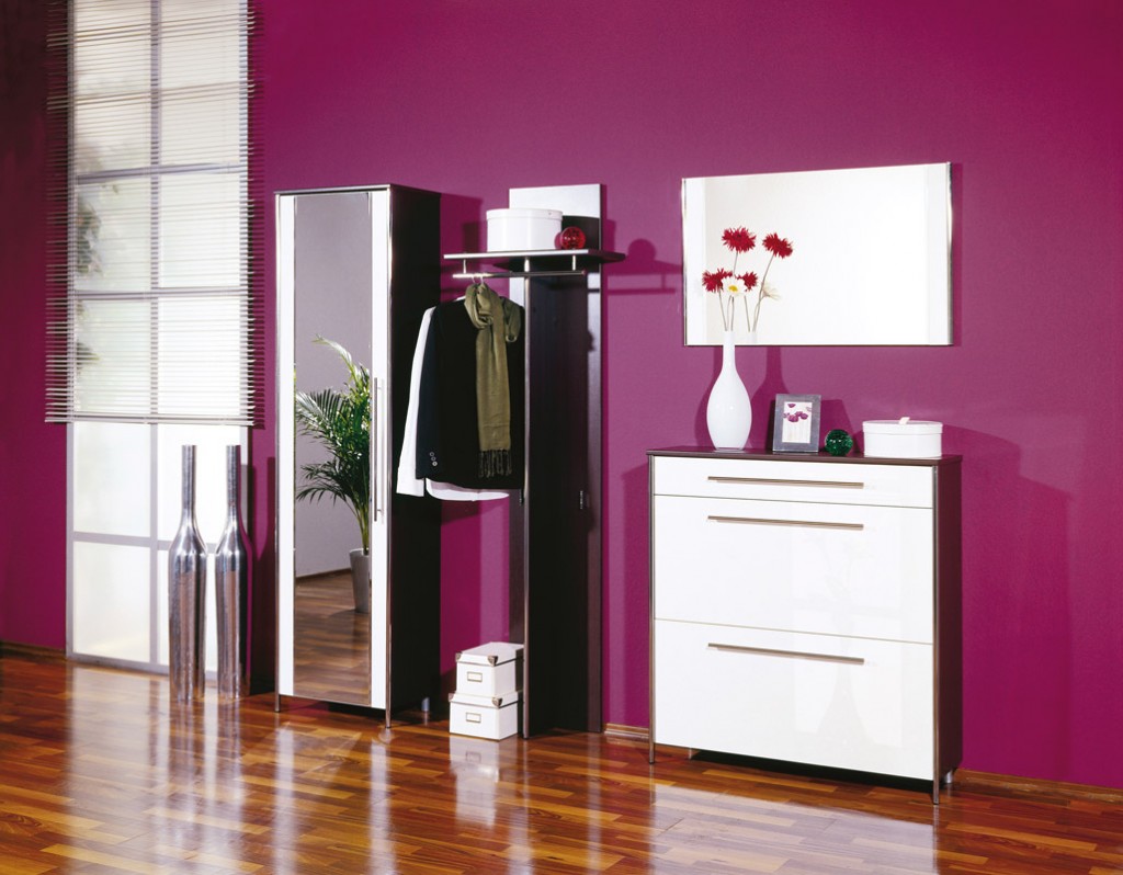 В качестве мебели рекомендовано использовать открытую вешалку с многочисленными крючками, полками и антресолью, пуфик с ящиком внутри и прочие предметы, с максимальной вместимостью и минимальными габаритами. Зеркало в такой прихожей можно расположить непосредственно на входной двери. А чтобы не «ломать голову» над выбором надёжного способа крепления такого хрупкого предмета, можно использовать уже готовую конструкцию, широкий выбор которых предоставлен почти в каждом из мебельных магазинов.