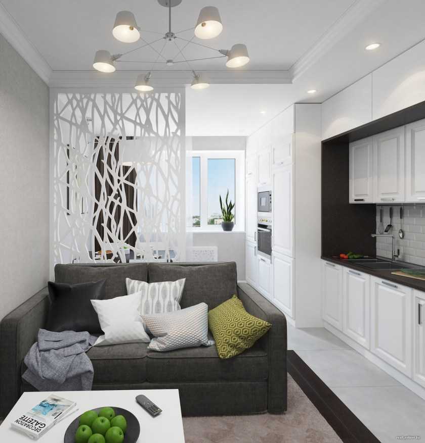 Ажурная ширма в дизайне интерьера гостиной и кухни