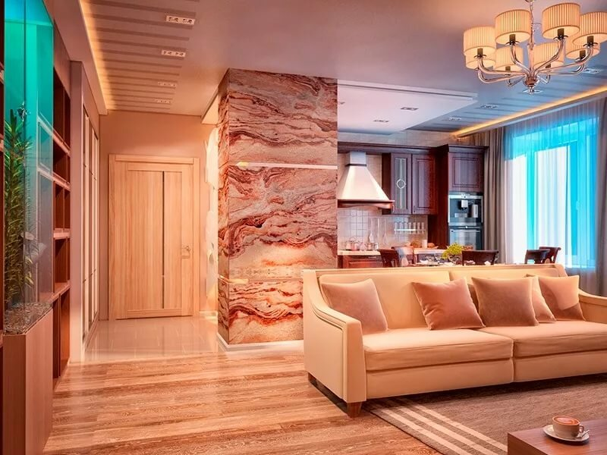 - Расширение пространства, появление простора для реализации более масштабных дизайнерских идей, которые невозможно выполнить в условиях маленького помещения.