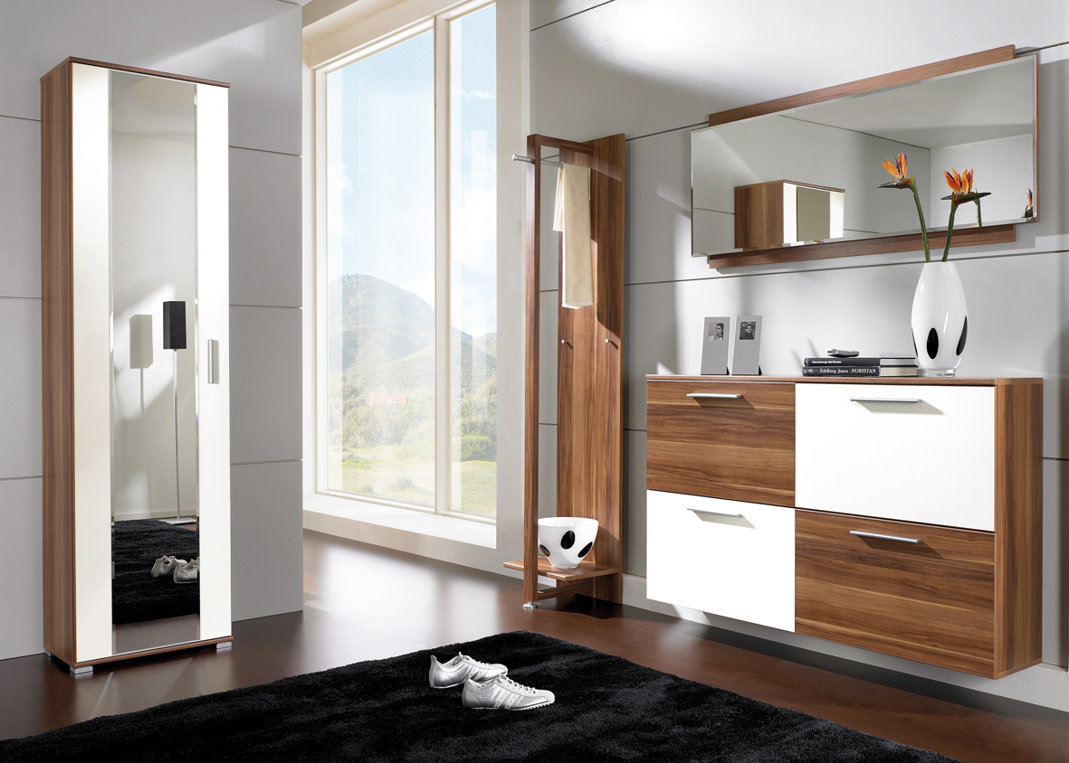 Не можете похвалиться достаточно просторной площадью прихожей, используйте отдельные элементы мебели без основного набора. Поставьте вешалку, шкаф для верхней одежды, полки для обуви в разных местах (где это будет уместно). При наличие большой площади можете смело эксплуатировать крупногабаритную гарнитуру.