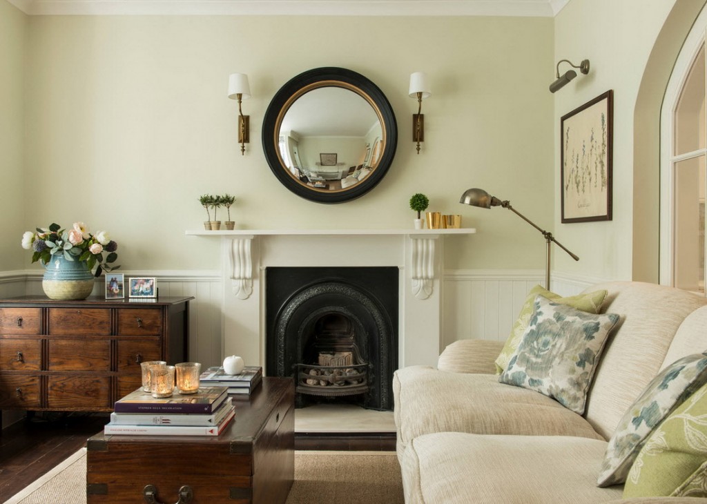 Эффект декорирования можно усилить вдвое, повесив над камином зеркало