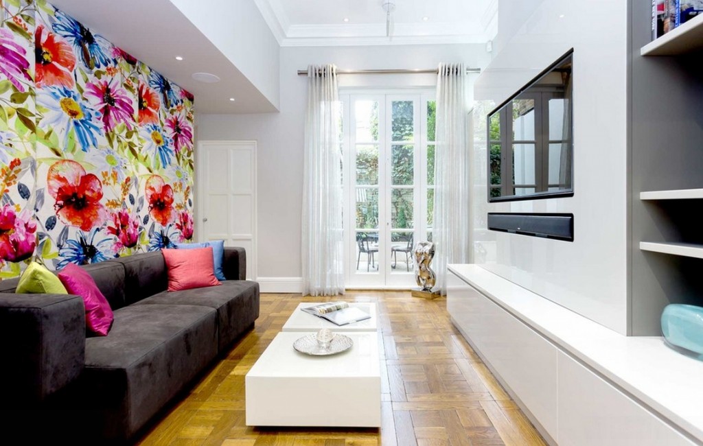Яркие обои с фотопечатью – самый быстрый и эффективный способ создания акцента в однотонном интерьере