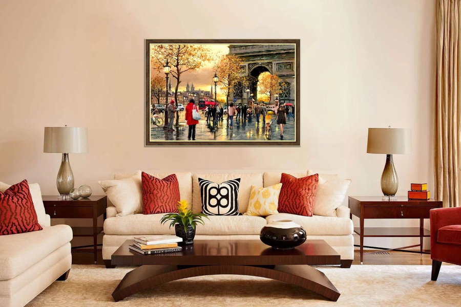Сюжет на картине должен соответствовать общей атмосфере гостиной