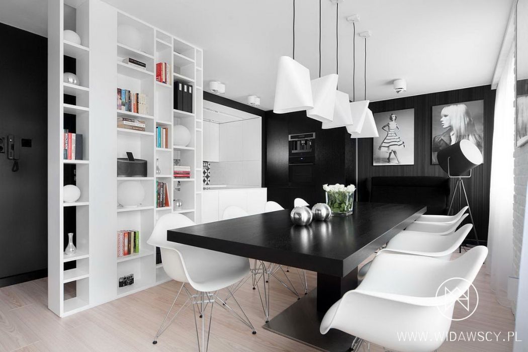 Классический приём – комбинация противоположных цветов, в нашем случае это белый и чёрный. Чёрный цвет сделает цветовую атмосферу насыщенной и уравновесит интерьер, если использовать цвета в приблизительно равных долях.