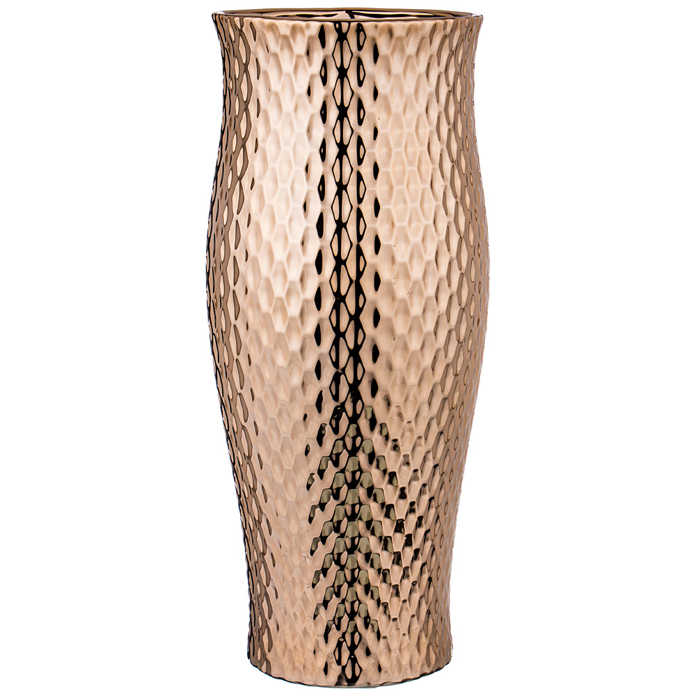 Рельефная поверхность золотистого цвета придает изделию роскошный вид. Максимальный диаметр составляет 16 см при высоте 37 см, вес модели 699-301 2,12 кг. Размещение – настольное.