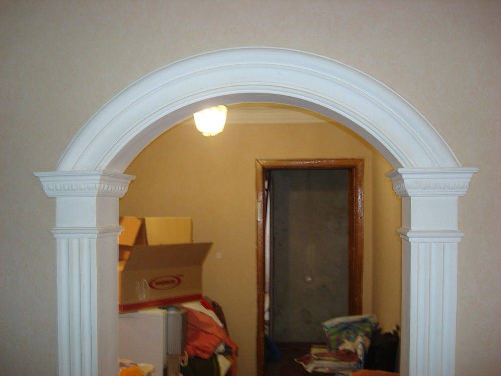 межкомнатные арки из гипса представляют собой отдельные изогнутые конструкции, оформленные колоннами по краям. При монтаже этих элементов у стен с помощью специального клея вам останется зашпаклевать соединяющую зону или замазать смесью из гипса. После всех этих манипуляций арку перекрашивают в выбранный цвет и обрабатывают лаком для защиты;