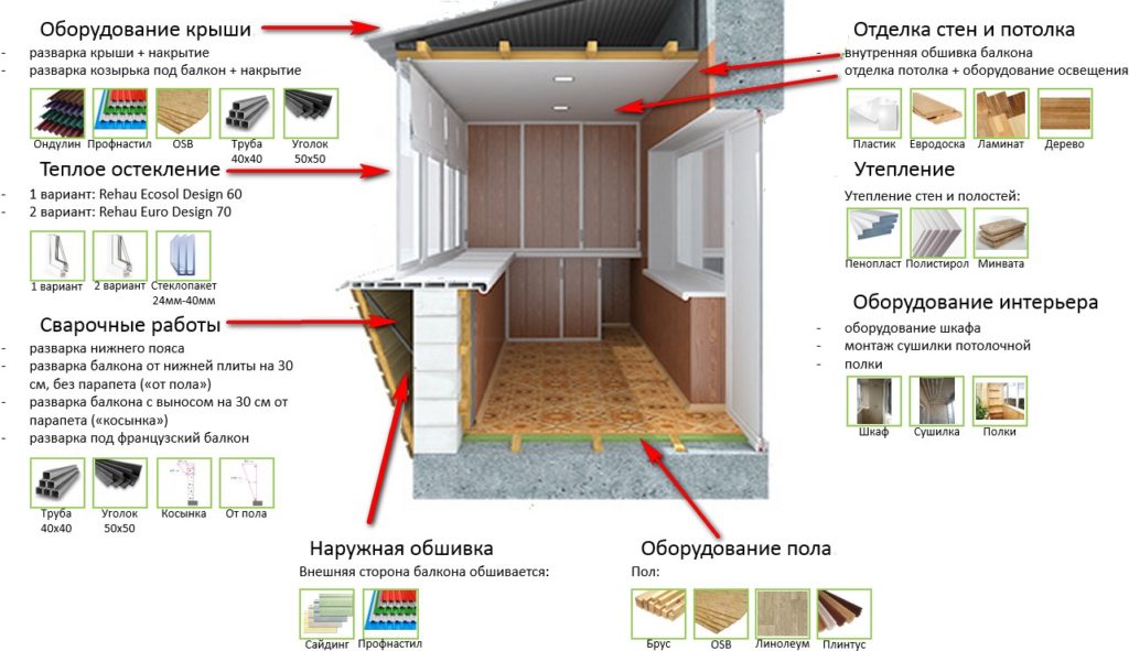 Наружная и внутренняя отделка балкона