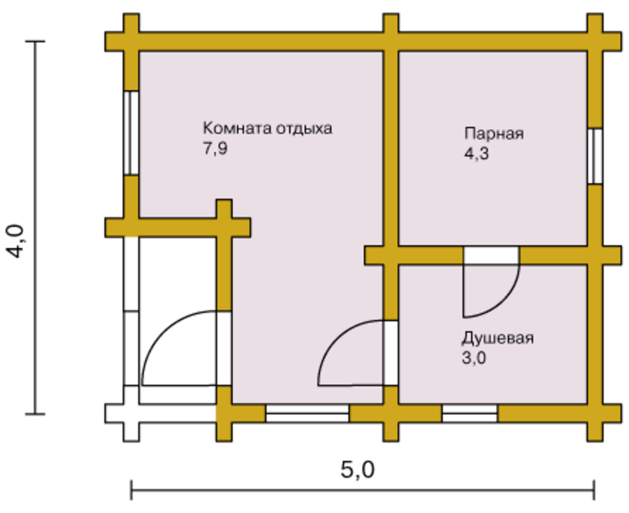 Минимальный состав помещений следующий: парилка, моечная, комната отдыха и предбанник
