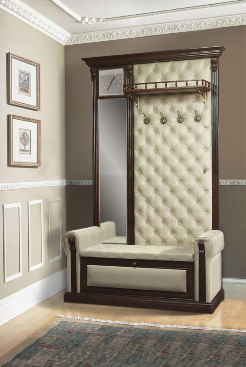 Наиболее органично такой вариант изделия впишется в классическую прихожую. Если изделие выполнено из массива дерева, то оно будет смотреться достаточно благородно и элегантно