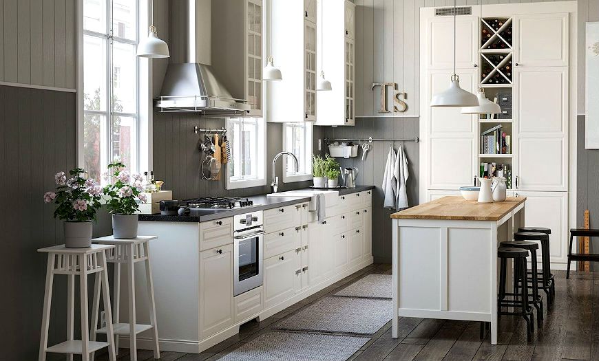 Ассортимент кухонной мебели ИКЕА ограничивается несколькими цветовыми решениями, среди которых белый доминирует. Гарнитуры выглядят стильно. Декоративными элементами и акцентами в отделке можно обыграть белые фасады из ИКЕИ по-разному.