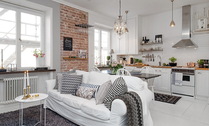 Черный и белый – довольно самодостаточная пара. Но акцентно добавив третью краску, можно придать интерьеру особенную эмоцию. Как же превратить дуэт черного и белого в трио?