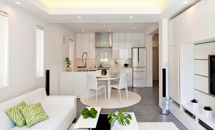 - белый цвет визуально расширяет пространство, а глянцевые поверхности наполняют его солнечным светом.