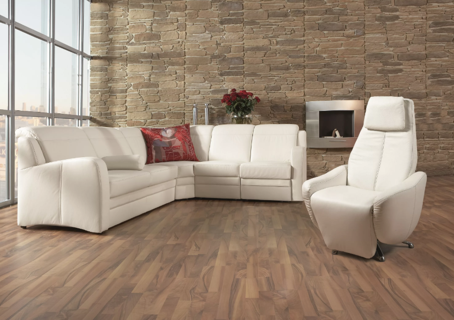 Значительно проще ухаживать за гарнитурами с кожаной обивкой, которая обеспечивает гостиной или кабинету шикарный внешний вид. Хотя в случае с диваном из натуральной кожи придется пользоваться специальными средствами. Чтобы избежать появления на мебели трещин потребуется поддерживать в помещении влажность не ниже 65 %. Намного практичнее в эксплуатации мебель из экокожи. Ее недостаток — зимой поверхность остается холодной, а летом из-за жары прилипает к коже.