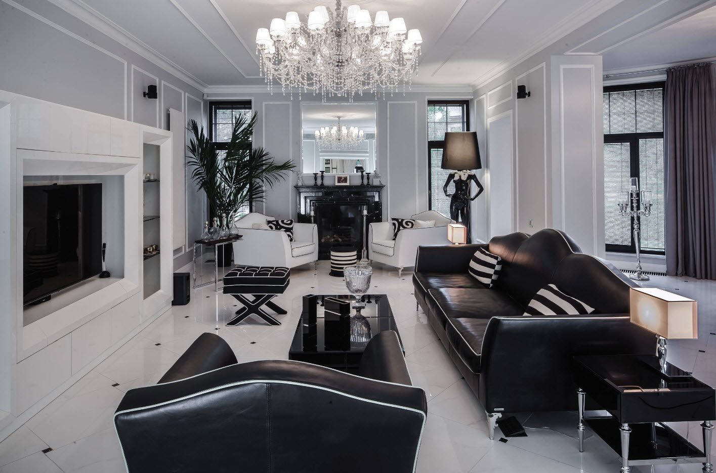 Черно-белая гостиная — дизайн элегантной строгости
