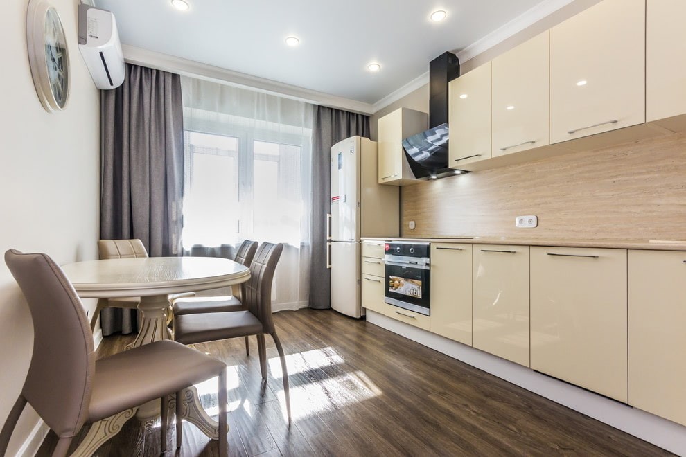 Нежный бежевый оттенок у большинства людей ассоциируется с теплом, спокойствием, чистотой и уютом. Его часто используют при создании классических интерьеров кухонь. Одним из преимуществ данного цвета можно назвать его способность гармонично сочетаться со всеми остальными оттенками.