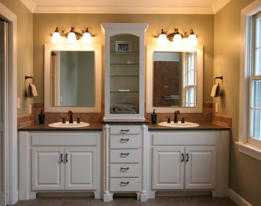 Не менее важно грамотно подобрать и расставить мебель. Лучший вариант для ванной комнаты – мебельный гарнитур из натурального дерева или шпона в темной или светлой цветовой гамме