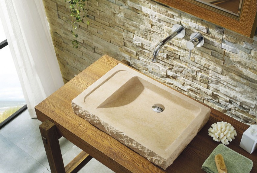 Ассортимент плитки для облицовки ванной велик. Есть в нем кафель из натурального камня. Он обладает эксклюзивным дизайном, в создании которого участвовала сама природа. У неё основа – камень, твёрдая порода разрезается на плитки, поверхность каждой шлифуется. Обработка не портит первозданный вид материала. Поэтому хорошо виден природный рисунок с прожилками, с разводами, разными вкраплениями, сформированными благодаря влиянию разных атмосферных воздействий.