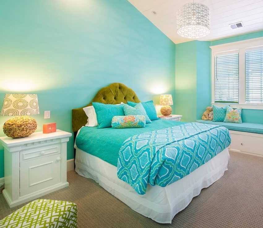 Посмотрите, какая ниже симпатичная бирюзовая спальня в интерьере — фото.