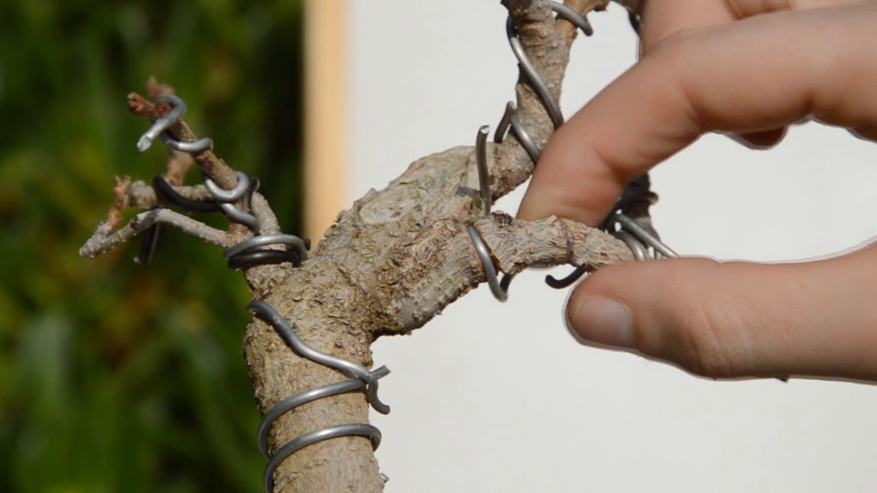 Как вырастить дома бонсай с канонической кроной, если подвязывание проволочных оттяжек не дает возможности придать ветке нужное направление? В таких ситуациях приходится использовать специальные металлические скобки. Их состояние также необходимо постоянно контролировать и переставлять при появлении опасности врастания в древесину. Такой прием необходим при изменении направления роста мощных, уже достаточно толстых ветвей.