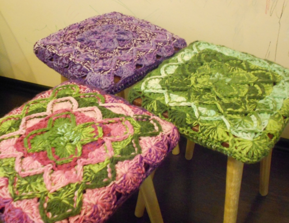 Чаще всего крючком вяжут круглые или квадратные модели для сидения табуреток. Рассмотрим пример вязки простого круглого чехла: