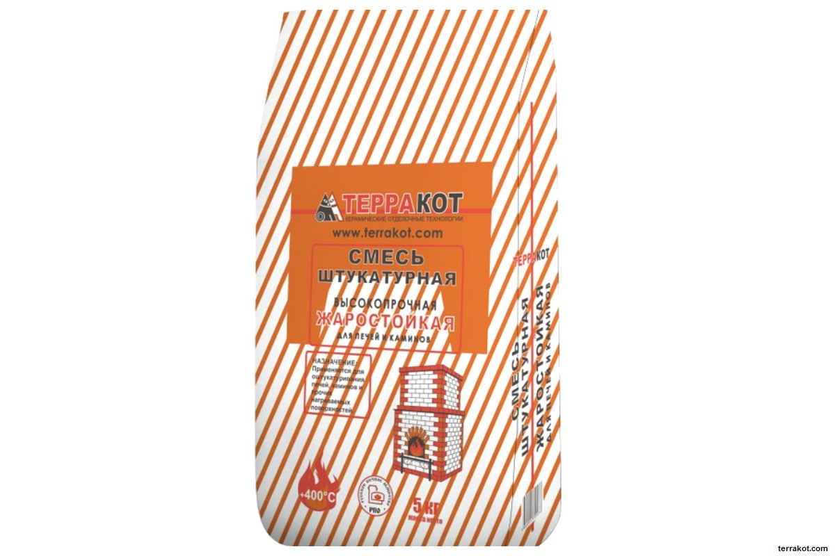 В термостойкую штукатурку производители включают шамотную глину, которая получается из каолиновой при воздействии на нее температурой 1500°. После обработки ее перемалывают до получения мелких фракций.