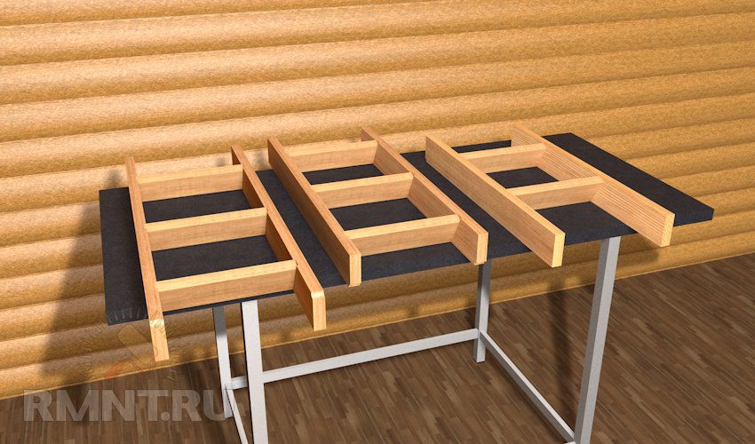 Конструкция отдельных секций собирается на саморезах 65 мм с прессшайбой через столярный клей Д-3.
