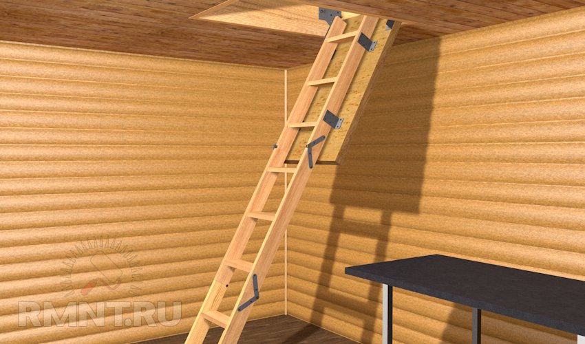 Как смастерить лестницу рассказывать никому не нужно, но заметим только то, что её длина должна быть больше расстояния от пола до люка примерно на 30 см.