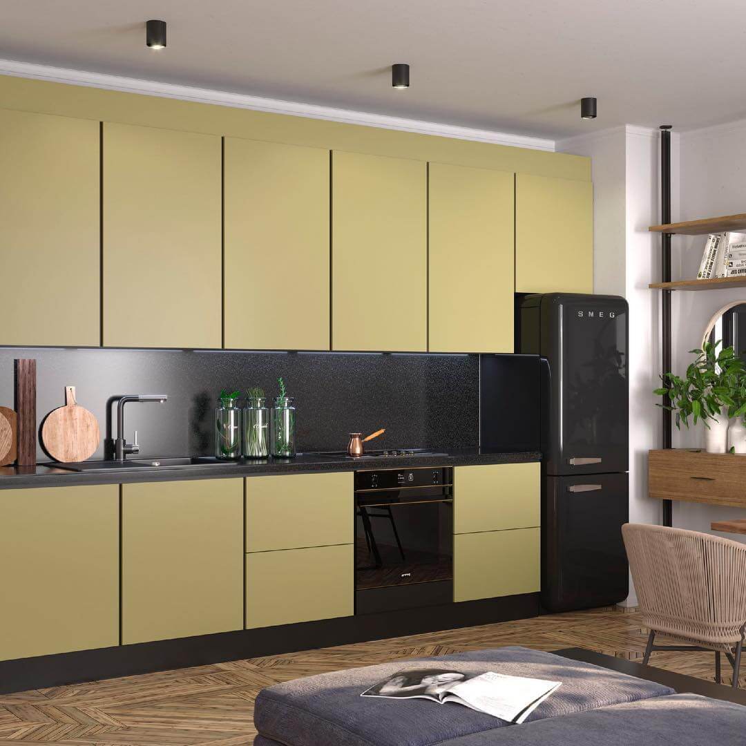Если сравнивать матовое покрытие с глянцевым, то первое будет иметь не такой широкий выбор оттенков. Но среди возможных вариантов можно подобрать распространенные и востребованные цвета кухонной мебели. При выборе цветовой гаммы стоит отталкиваться от габаритов комнаты и окон, заданном стилевом направлении.