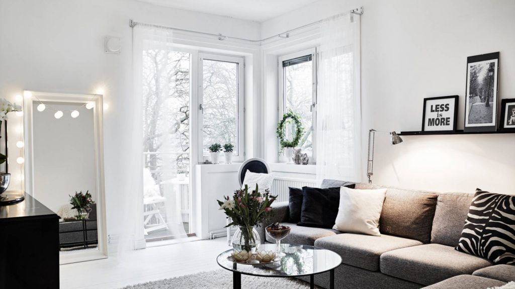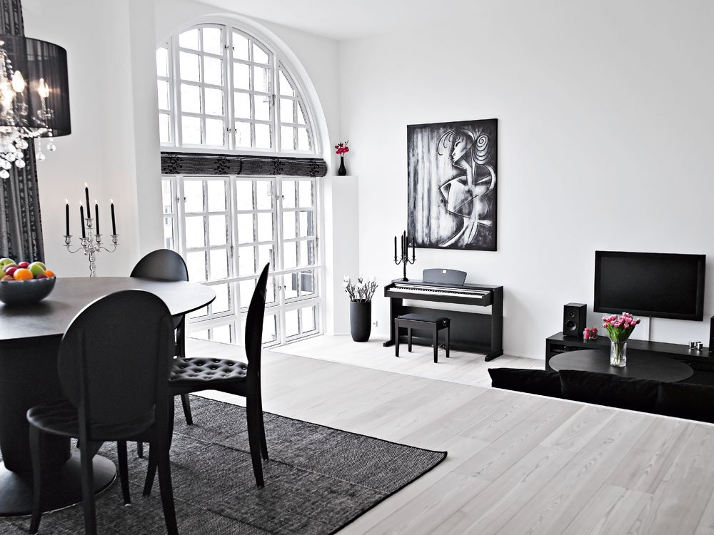 3. Некоторые считают, что использование монохромного дизайна в черно-белой гостиной с использованием заявленных полярных оттенков наложит отпечаток консервативности. Вовсе нет: попробуйте добавить белый (много белого; в меньшей степени ─ черного) к оттенкам доминирующего цвета, и вы увидите, как сразу найдется тот самый баланс, который подарит «долговечную» обстановку, которую не придется изменять в угоду быстро меняющейся Ее Высочеству Моде.