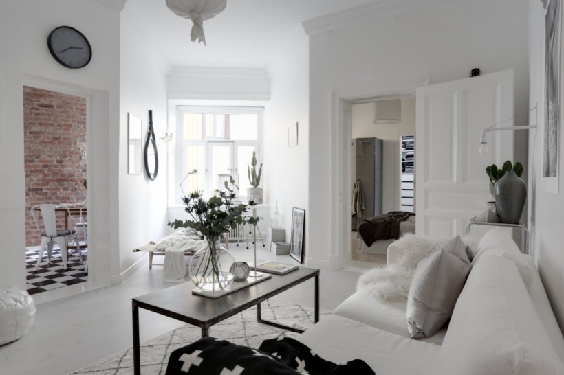 Белый цвет, такой чистый, легкий и элегантный, некоторое время был утилитарным, поскольку использовался в больничных и педагогических учреждениях. Стены с побелкой считались чем-то обыденным для интерьера ретро и деревенского кантри, из-за чего считался уместным только в качестве фона.