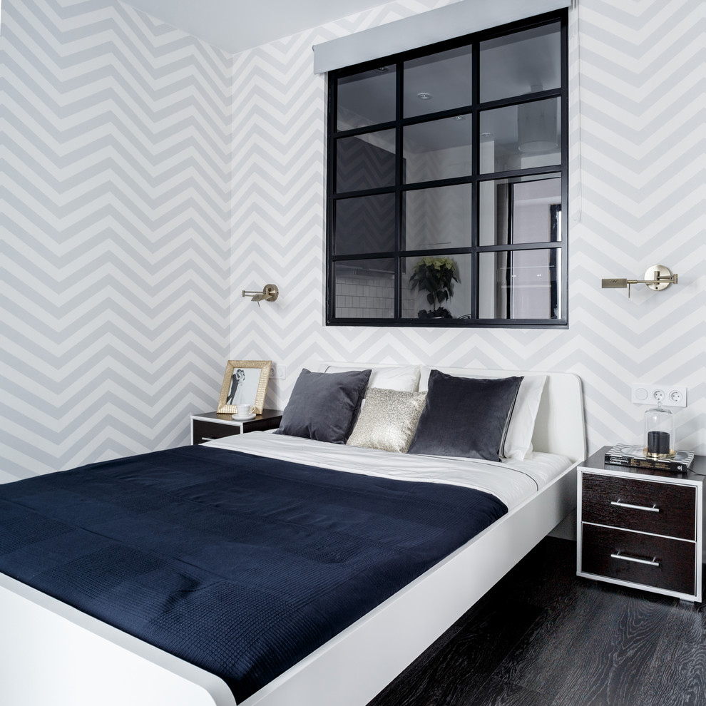 Как лучше обыграть дизайн спальни в черно-белом цвете