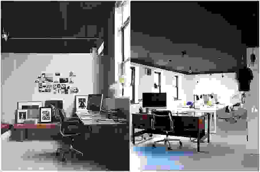 Современное рабочее пространство с чёрным потолком