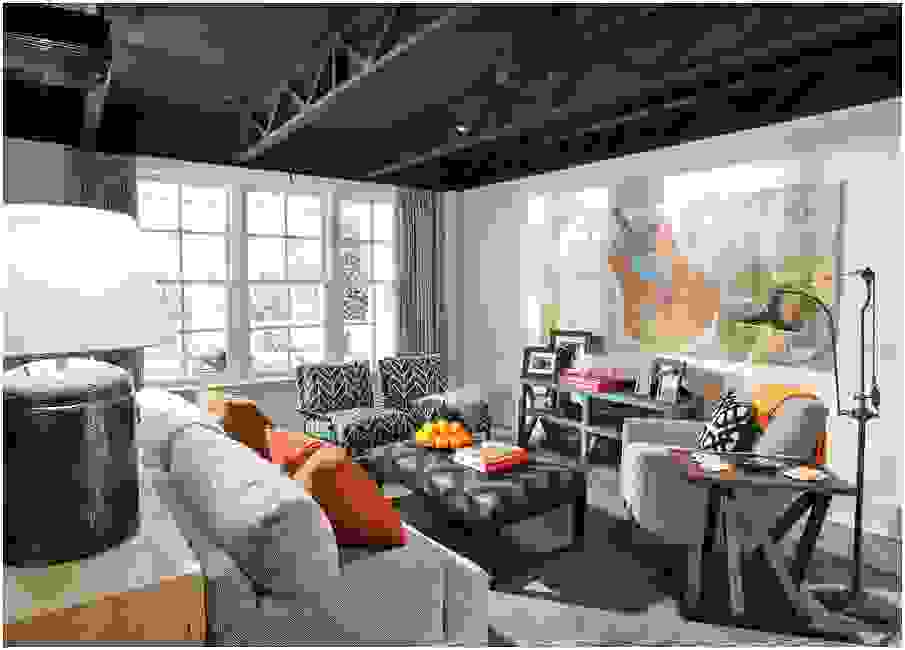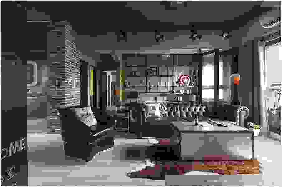 Трендовый интерьер в стиле индастриал с чёрным потолком