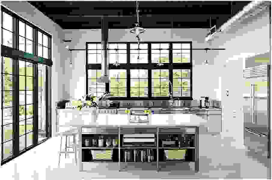 Чёрный потолок в интерьере кухни в индустриальном стиле