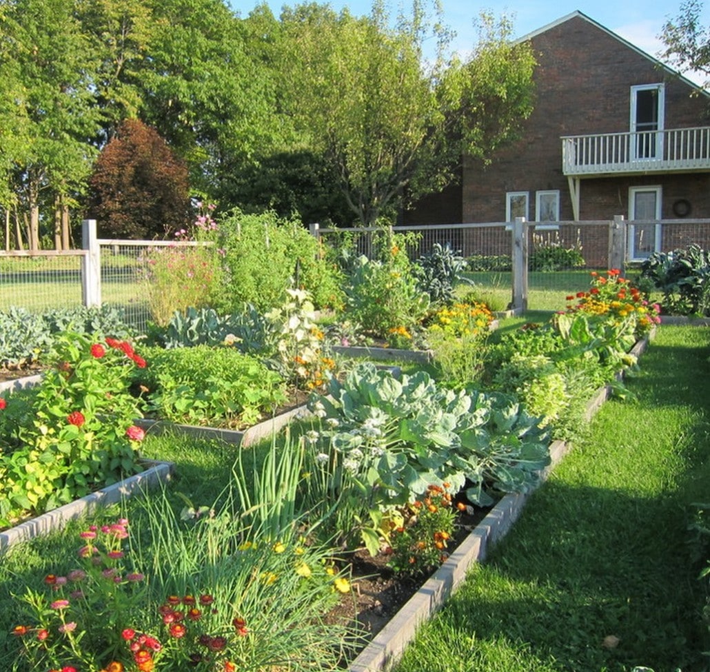 Обязательное условие создание декоративного огорода — высадка 5-10% несъедобных многолетних или однолетних декоративных и овощных культур от общего количества растений. Несъедобных — это значит таких, которые не будут использоваться для еды, например, красивые кустики томатов, декоративный подсолнух, салаты.