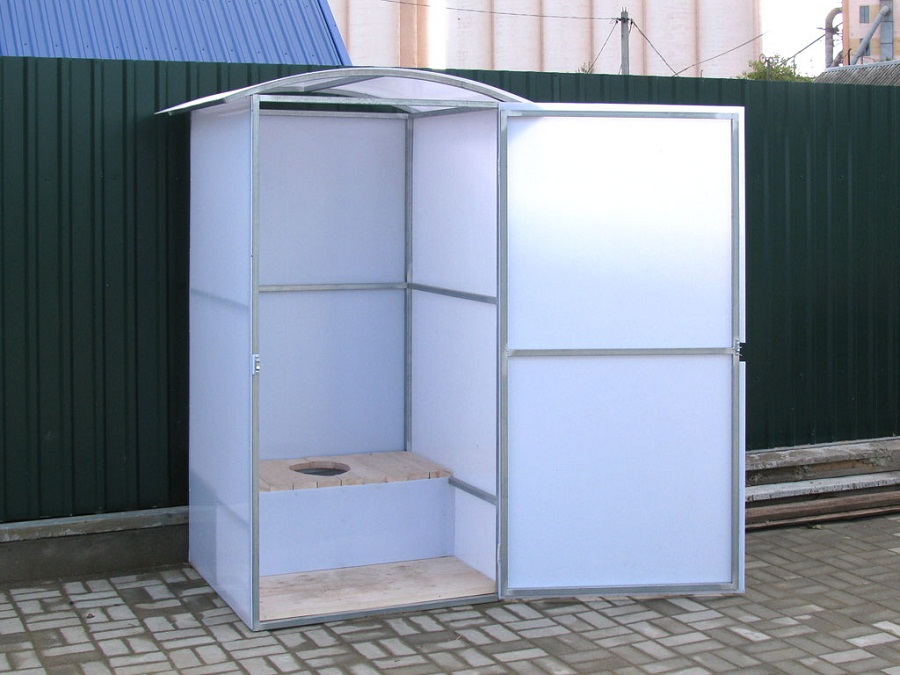 Рис.2. Туалетная кабинка из металлической трубы обшитая не прозрачным полибикарбонатом.