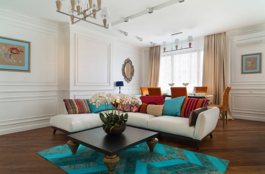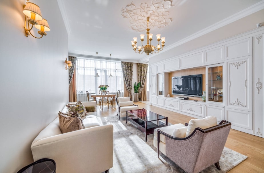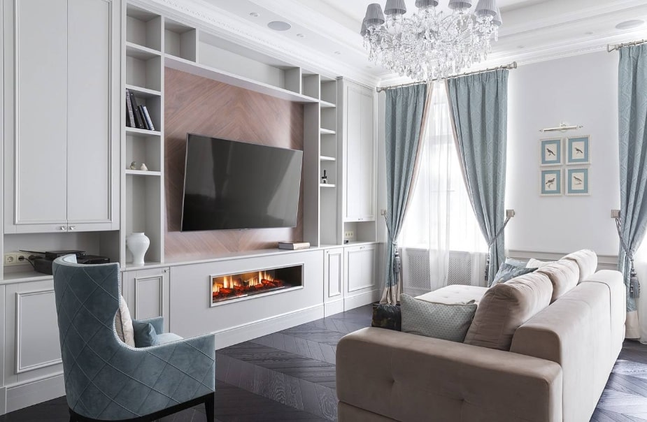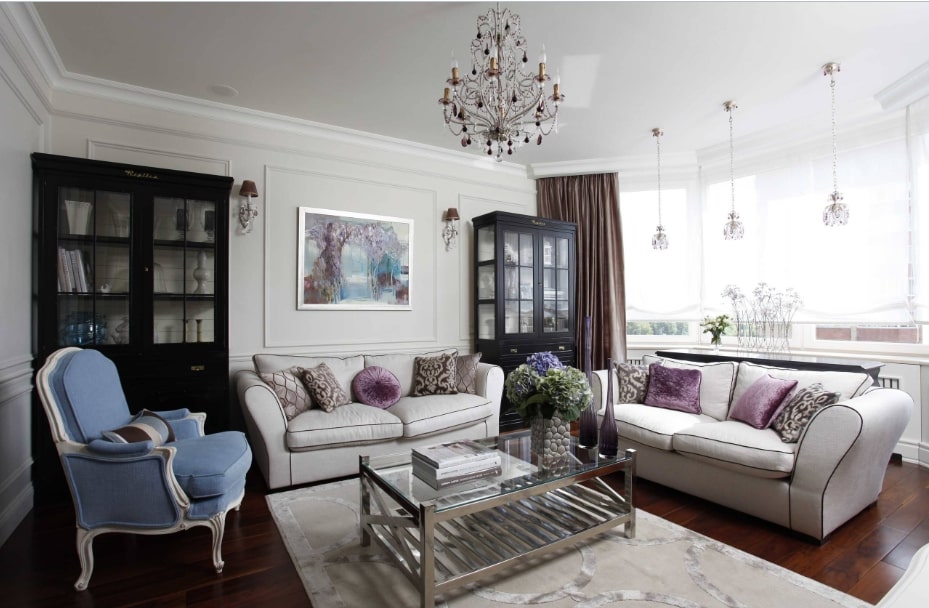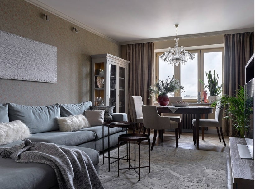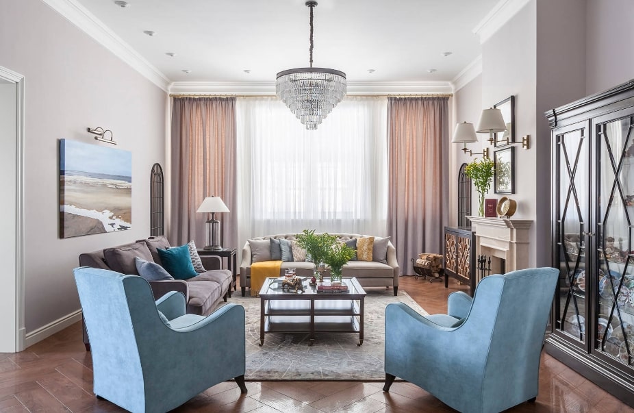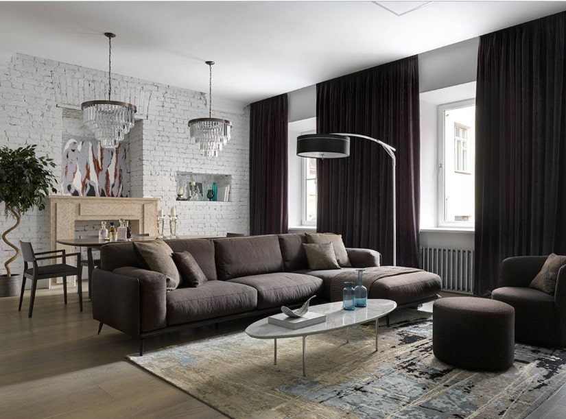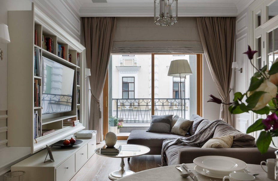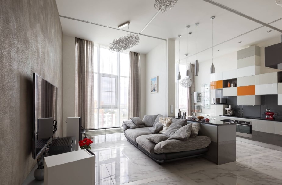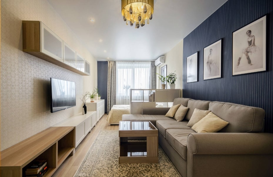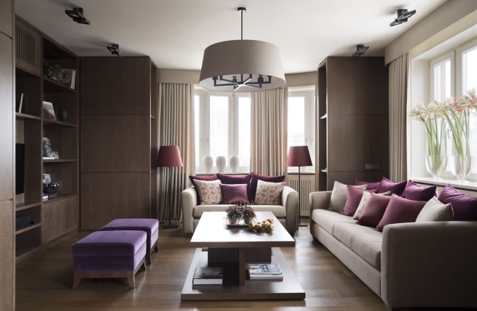 В зависимости от квадратуры гостиной используют те или иные ухищрения для увеличения или уменьшения пространства.