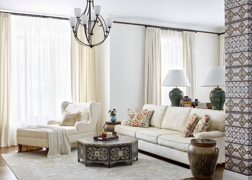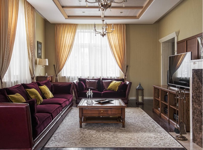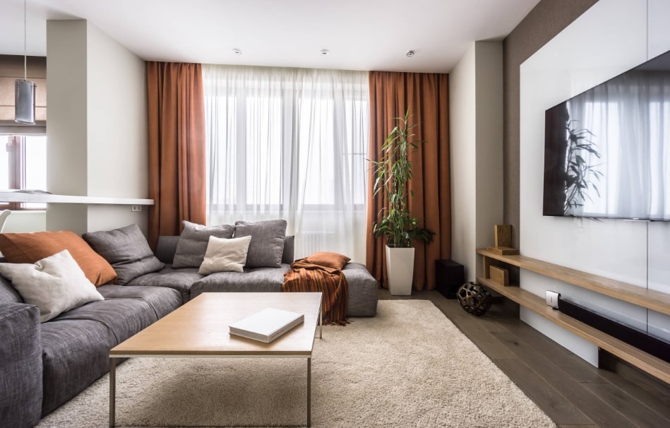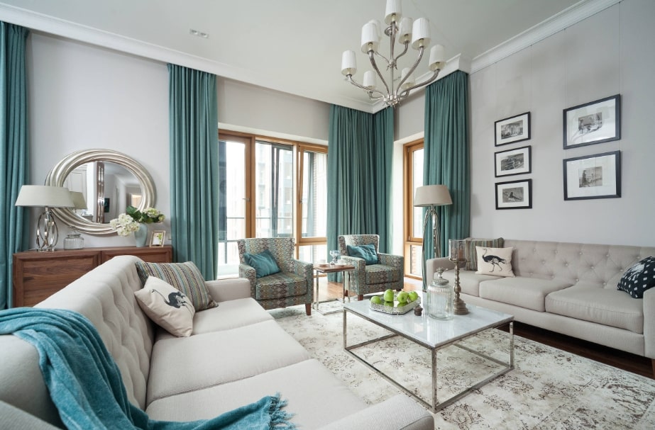 Использование занавесок на окнах обязательная часть интерьера гостиной – они придают ей жилого вида и дополняют общую картину.