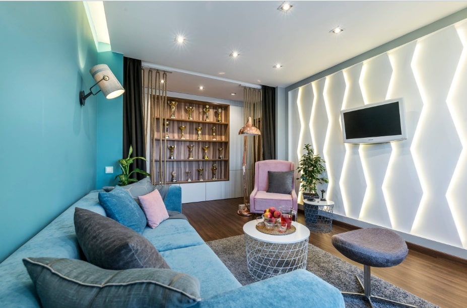 К примеру, зону отдыха можно выделить не только мебелью, но и грамотными световыми акцентами. Или выполнить разделение на зоны в соответствии с цветовой организацией помещения. Какие же объекты можно успешно использовать для того, чтобы усилить декоративный эффект и наслаждаться интерьером?