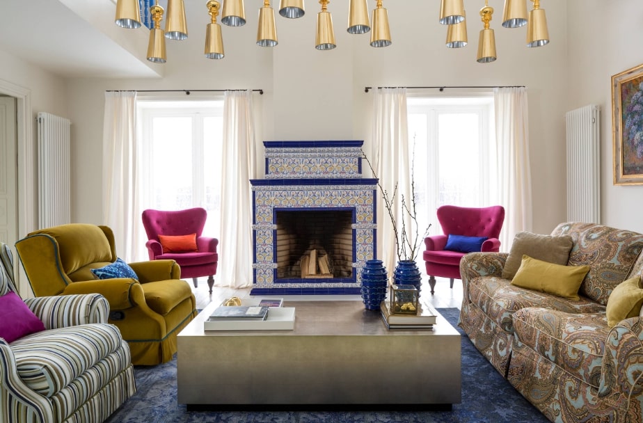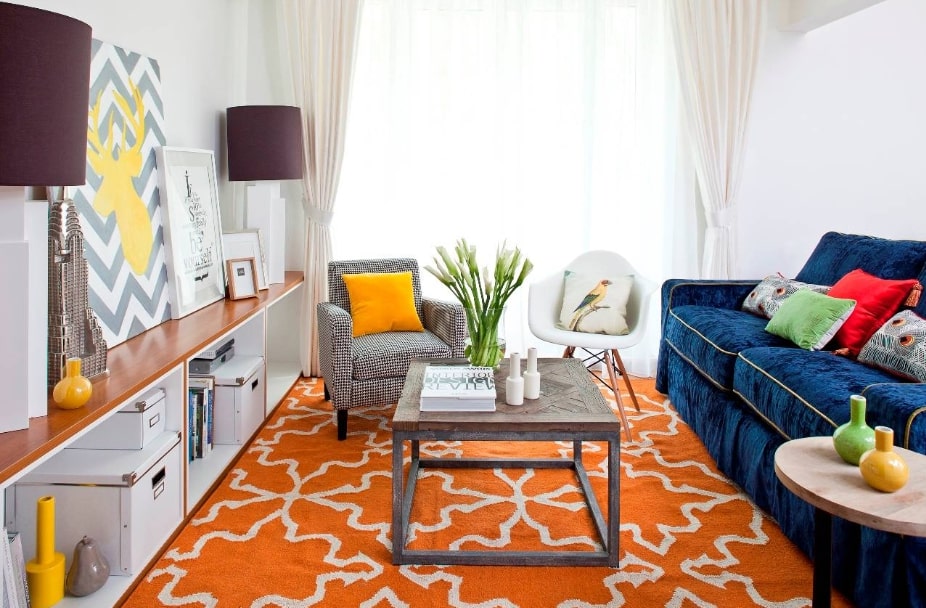 В гостиной не должно быть слишком много декора, оставьте немного свободного пространства. Не бойтесь использовать яркие и темные цвета. Главное, чтобы они хорошо сочетались между собой.