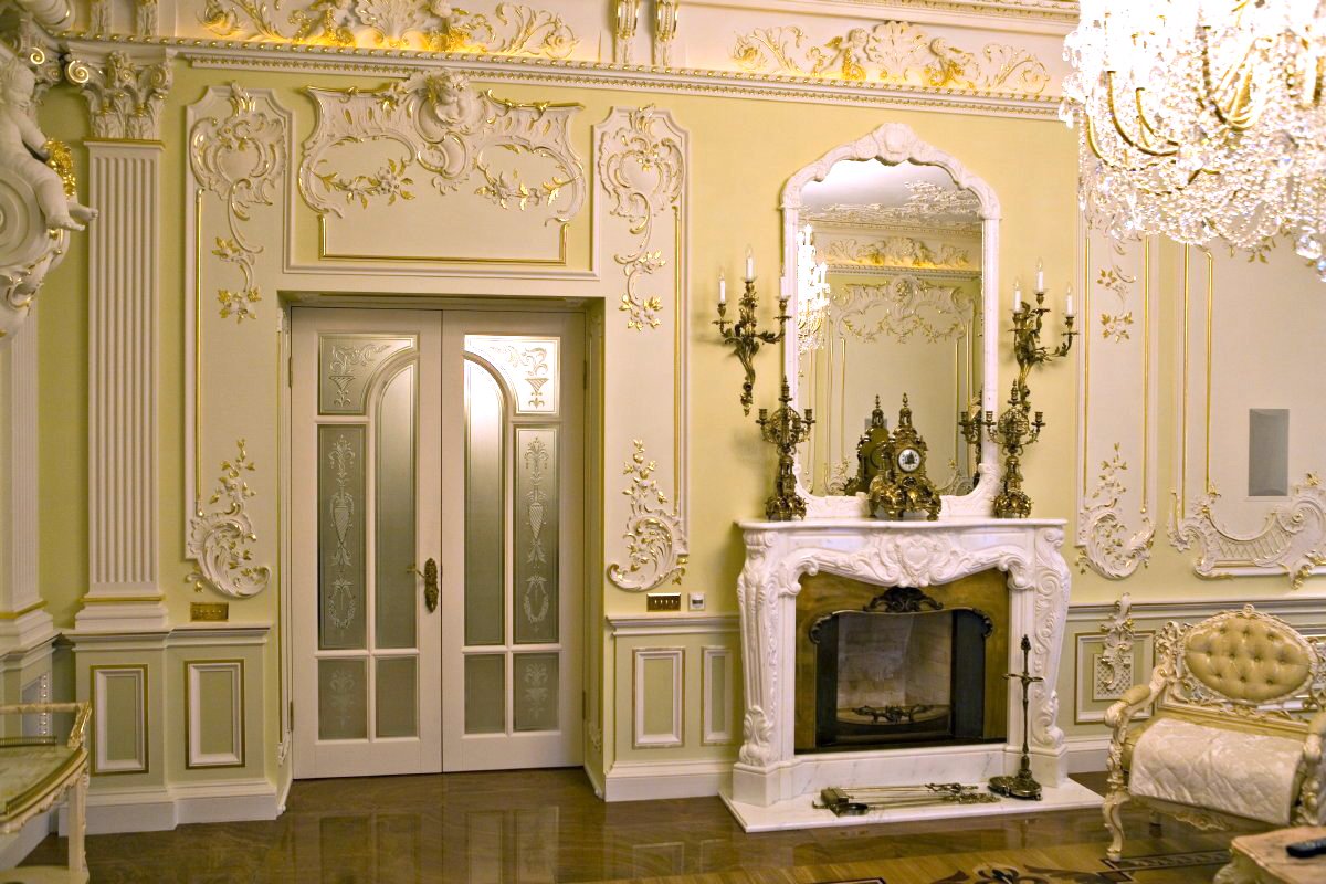 Имитация гипсовой лепнины делается из крупно- и мелкозернистых листов пенопласта. Чаще всего такие детали делают белыми, неокрашенными или имитирующими различные материалы – древесину, камень и др. Лепниной из пенополистирола украшают интерьеры стилей: