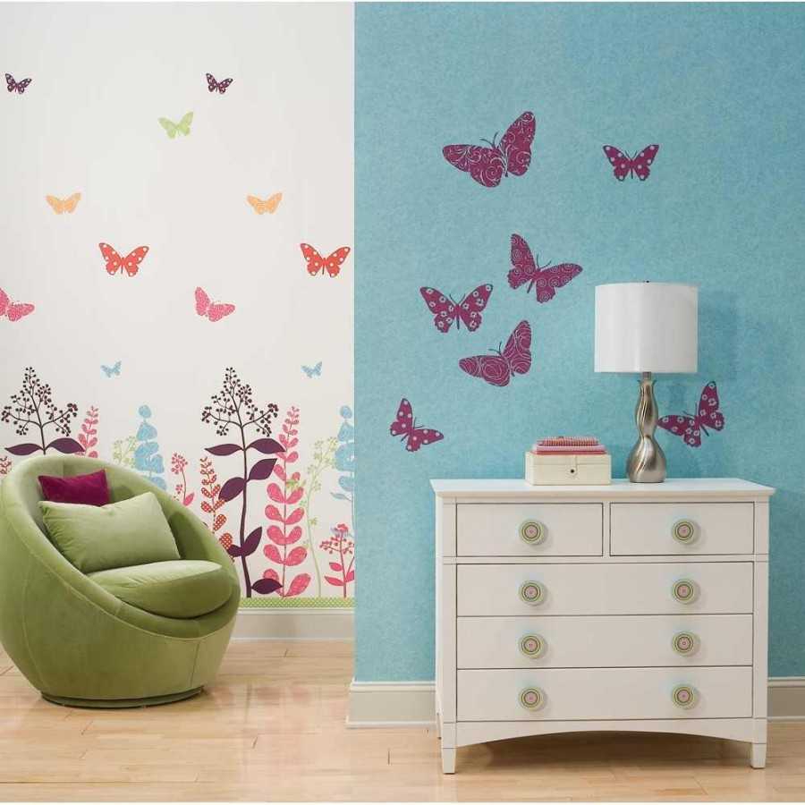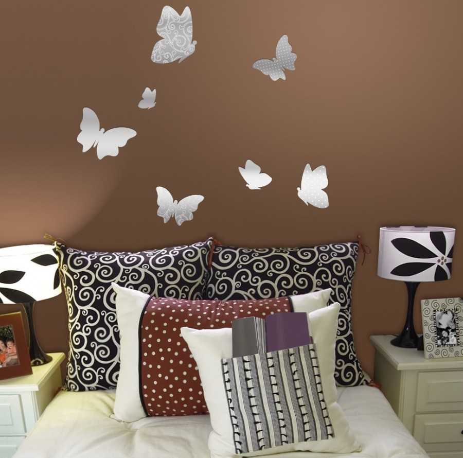 Очень модным и популярным способом украшения стеновых поверхностей являются композиции из бабочек. Такие наборы с уже готовыми виниловыми мотыльками-наклейками можно купить в магазине. Однако куда приятнее сделать это самому.